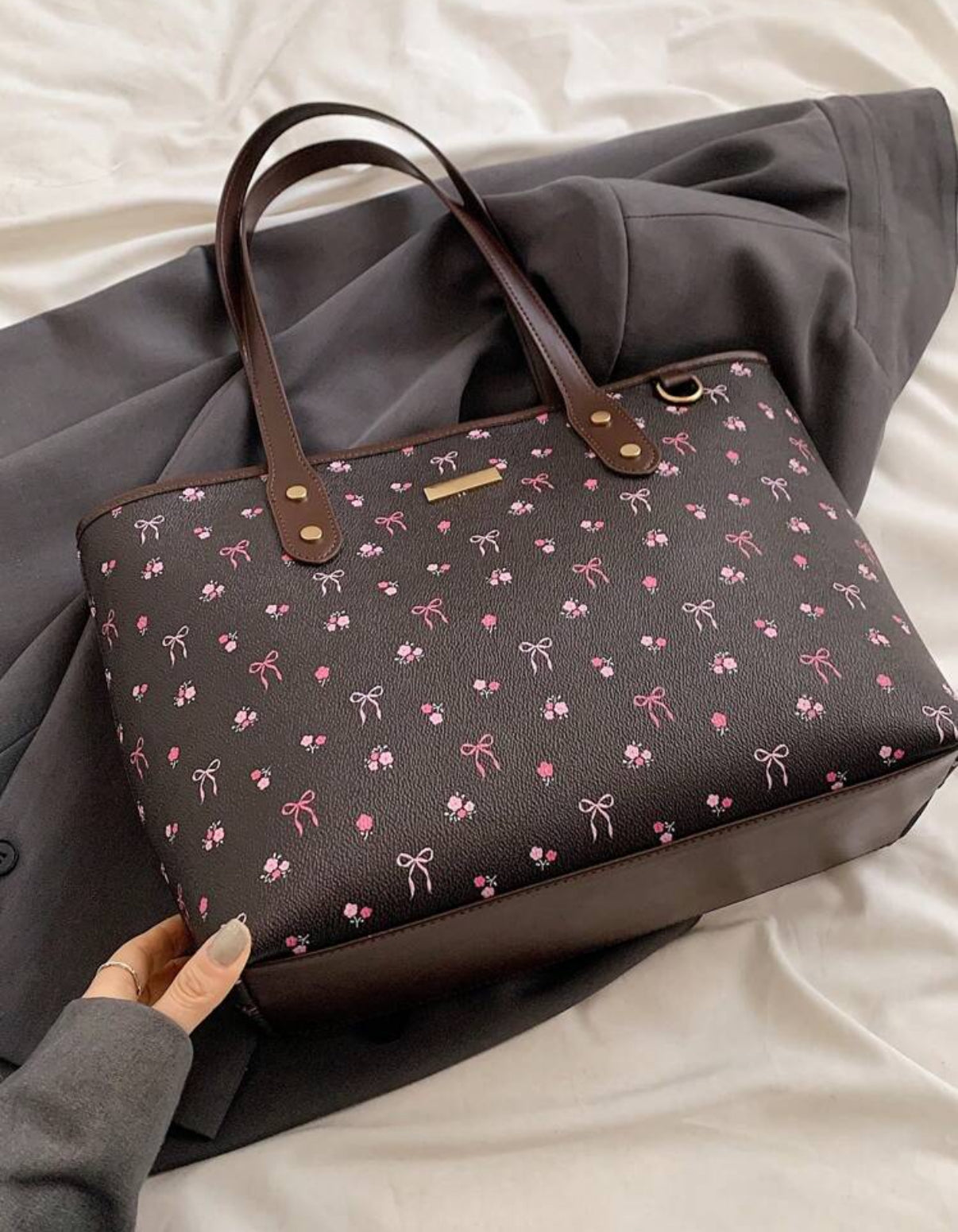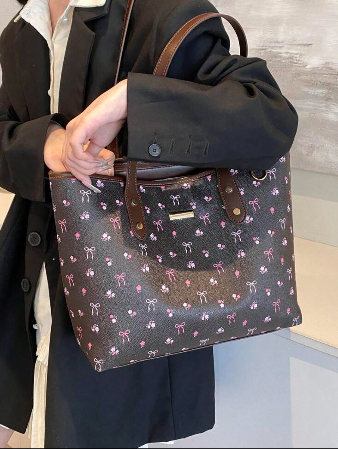 Shein Classic Solid Color Large Shoulder Tote Bag